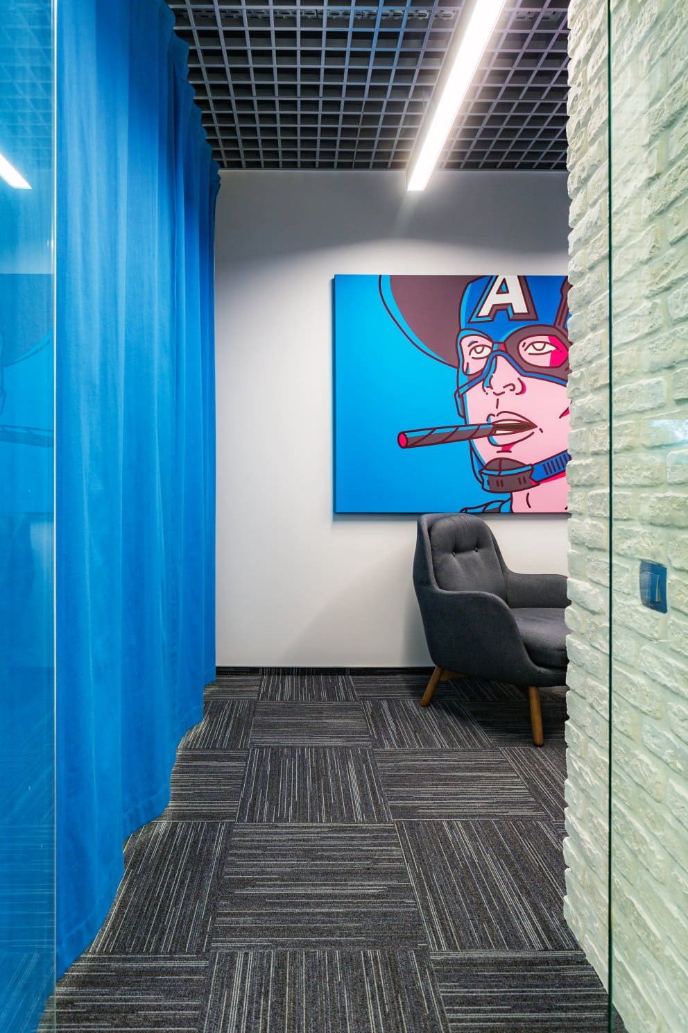 Нас пригласили оформить офис в стиле лофт для представительства известной немецкой IT компании «ADMITAD GmbH». Это получился очень необычный проект. Все переговорные в офисе компании посвящены различным героям MARVEL. От нас потребовалось использовать наши самые яркие ткани, и с этой задачей мы успешно справились благодаря прекрасным однотонным арабским тканям, которые не так давно появились у нас. Теперь в нашем портфолио есть эти замечательные фотографии.