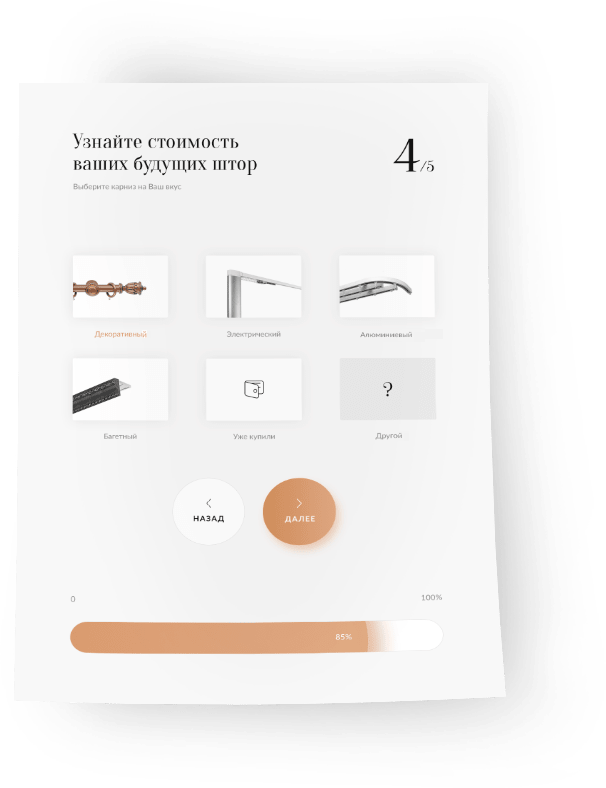 Пройдите тест и получите подробный расчет стоимости штор на примере одного окна