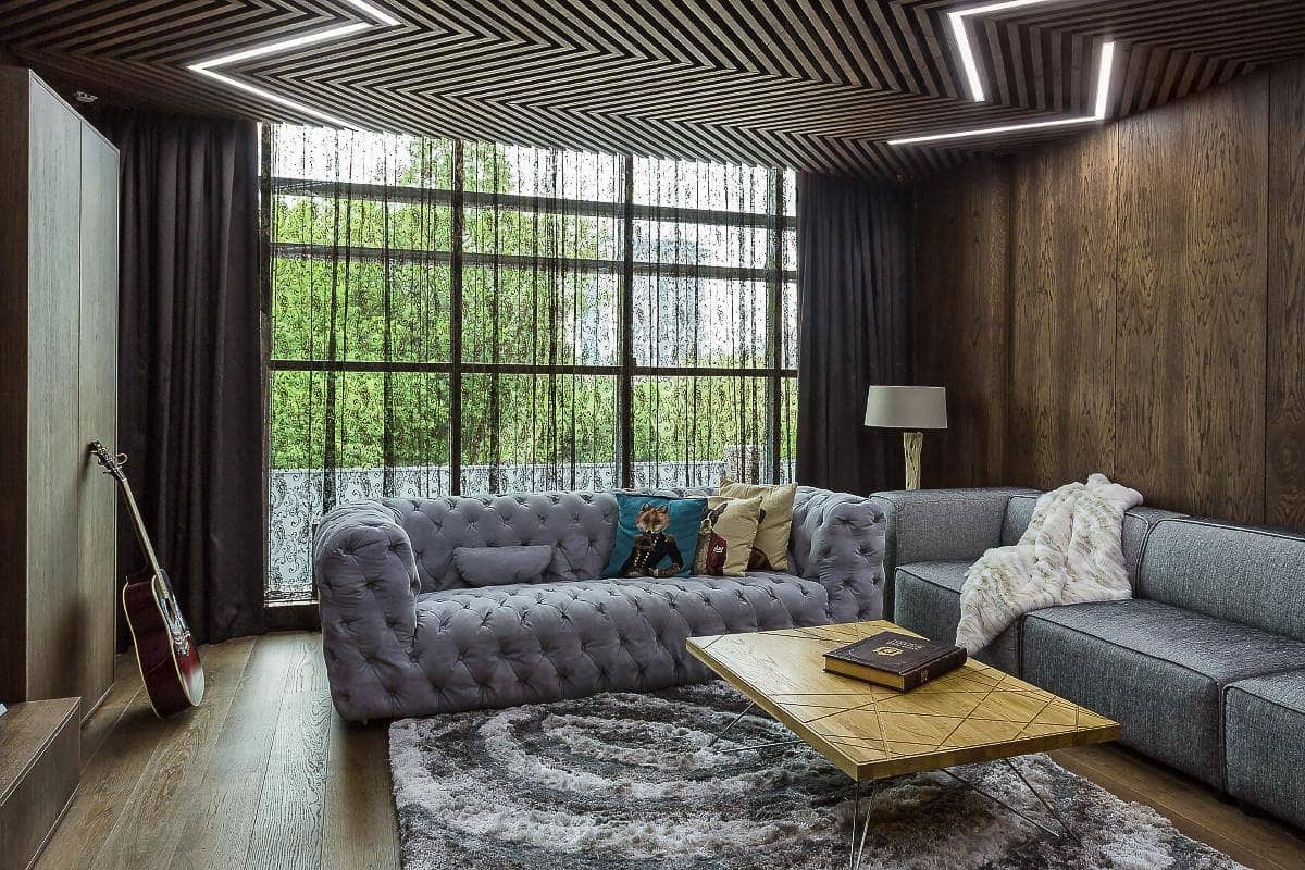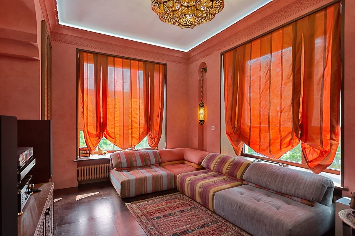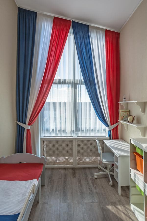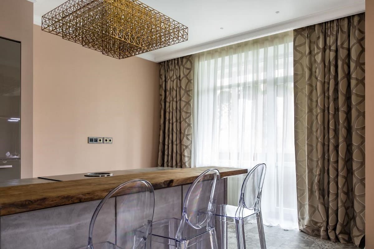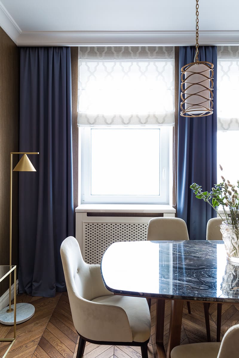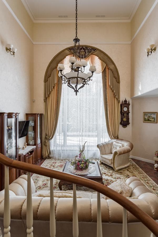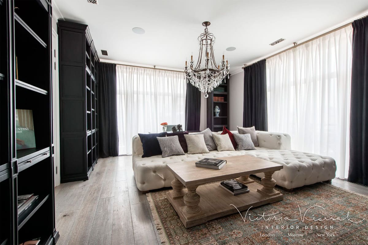 Интерьер этого таунхауса создавался дизайнером Екатериной Струковой, как декорация к спектаклю. К которой нужно было создать соответствующие шторы. Важно, чтобы шторы были классическими, но при этом в них не было бы, свойственных классическому стилю многослойности.