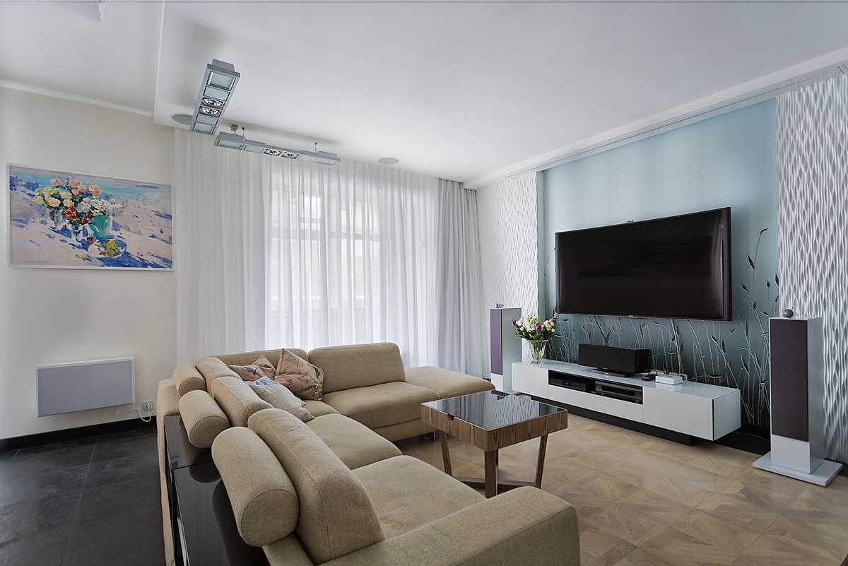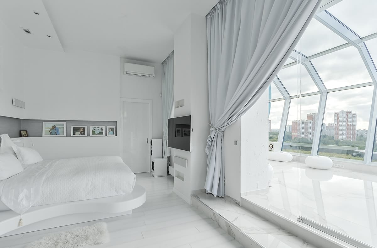 Ольга Воронина, дизайнер-архитектор, а также руководитель компании, проектирующей умные дома, пригласила нас для оформления окон в свой прекрасный пентхаус. Мы не только сшили шторы и поставили карнизы, но также одели диваны на террасе в специальную уличную ткань. Конечно же все электрокарнизы были подключены к «умному дому», созданному Ольгой. Особенно приятно, что у нас теперь есть не только фотографии нашего портфолио, но даже видеоотзыв от великолепной Ольги Ворониной.